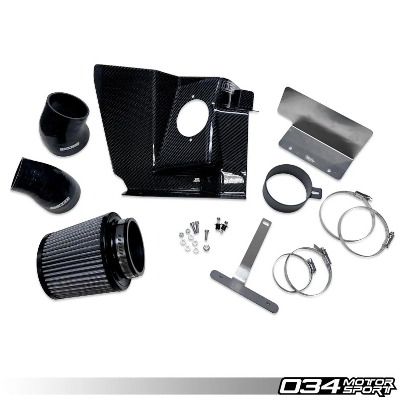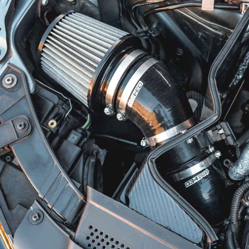 Le kit d’admission S34 en fibre de carbone de 034Motorsport est conçu pour maximiser les performances du moteur 2.0 TFSI EA888 Gen 2 équipant les Audi A4, A5 et Allroad B8/B8.5. Grâce à son large filtre conique 4" à double couche et son tube en silicone haute performance, ce kit améliore le flux d'air jusqu’à +39 % comparé à l’admission d’origine, tout en réduisant la température d’air admis.