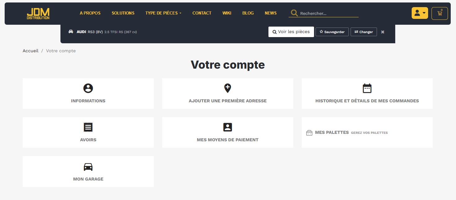 Connectez-vous à votre compte JDM Distribution et commencez dès maintenant à remplir votre Garage pour vos commandes en cours.