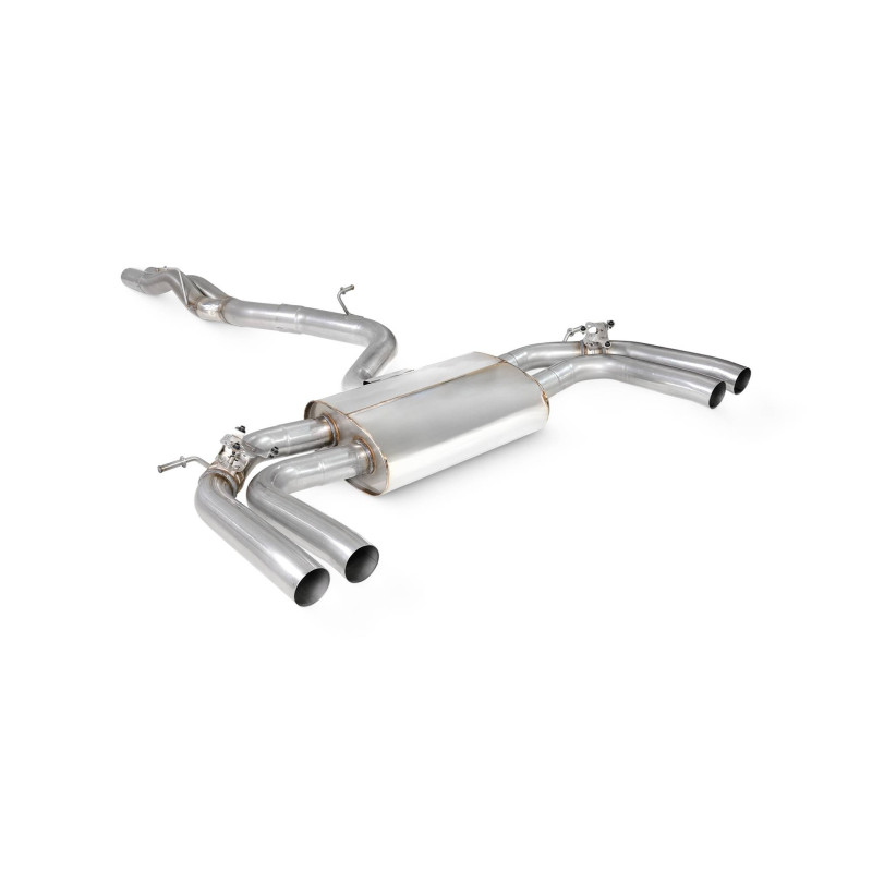 Ref SAUS115 Scorpion Cat-back sans intermédiaire (valvé) Scorpion pour Audi RS3 8Y SaloonDemi ligne cat-back sans intermédiaire avec valves électroniques Scorpion pour Audi RS3 8Y Saloon de 2021 à 2024