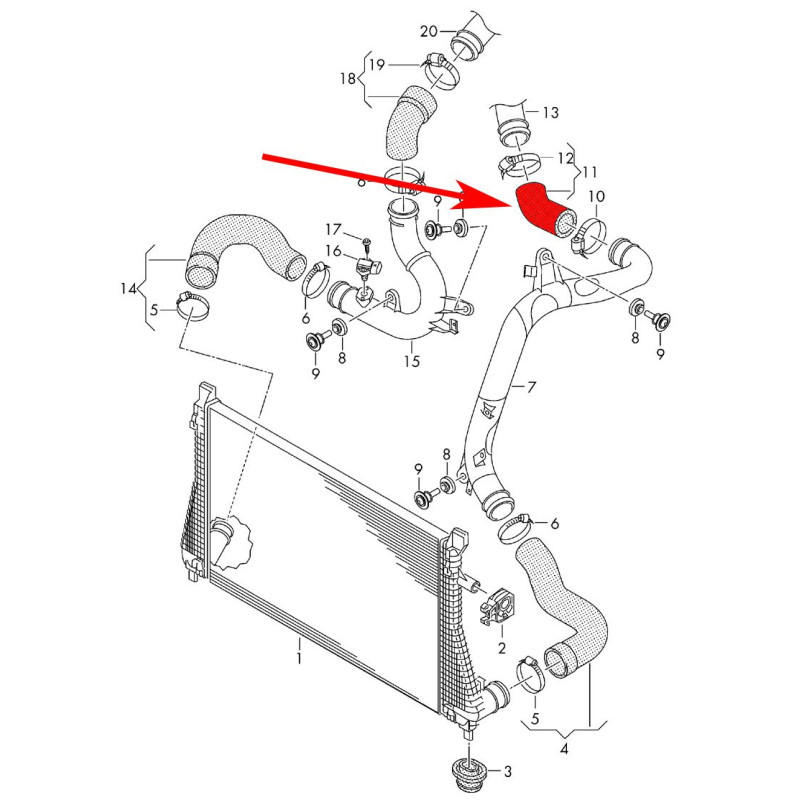 Durite Silicone de l'Outlet de turbo pour moteurs EA888 MQB du groupe VAG Dynaparts