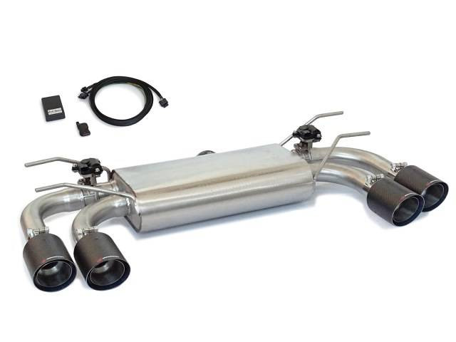 Silencieux arrière duplex en inox g/d avec 2 sortie ronde Carbon Shot 100 mm avec valves électriques intégrées et télécommande wifi. Ligne avec diamètre majoré 70 mm