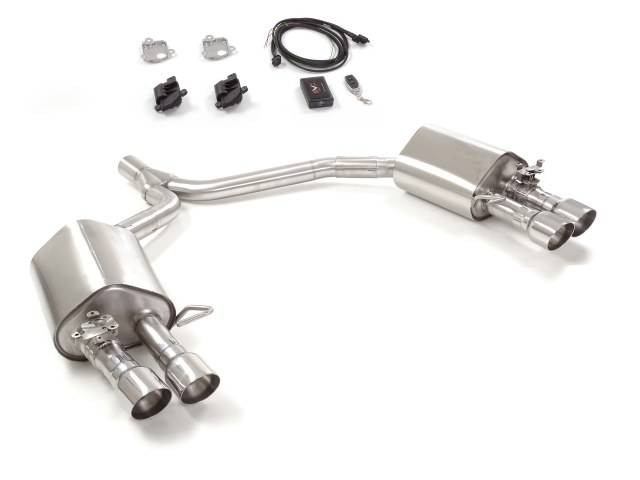 Silencieux arrière duplex en inox g/d avec sortie ronde Sport Line 2x90 mm décalées avec valves électriques intégrées et télécommande wifi.