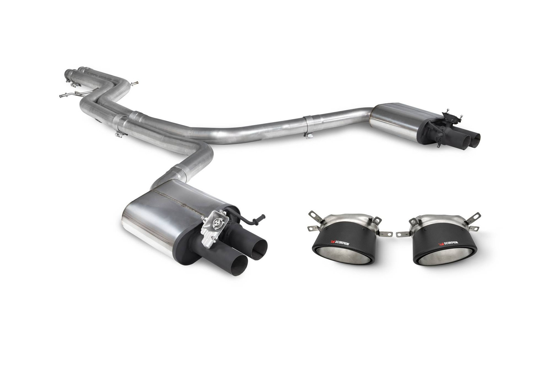 SAUS087CF Demi ligne sans intermédiaire & embouts Scorpion pour Audi RS6 Avant C7