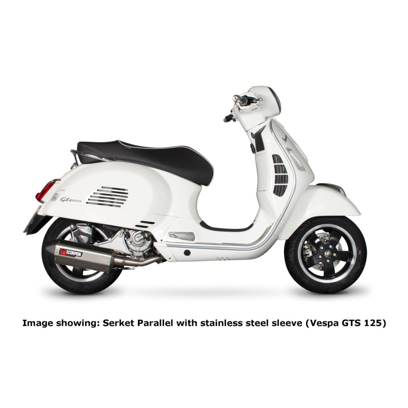 Ligne complète Serket "Parallel" Scorpion, Embout acier brossé pour Vespa GTS 125 / GTS250 / GTS300 / GTV250 / GTV300