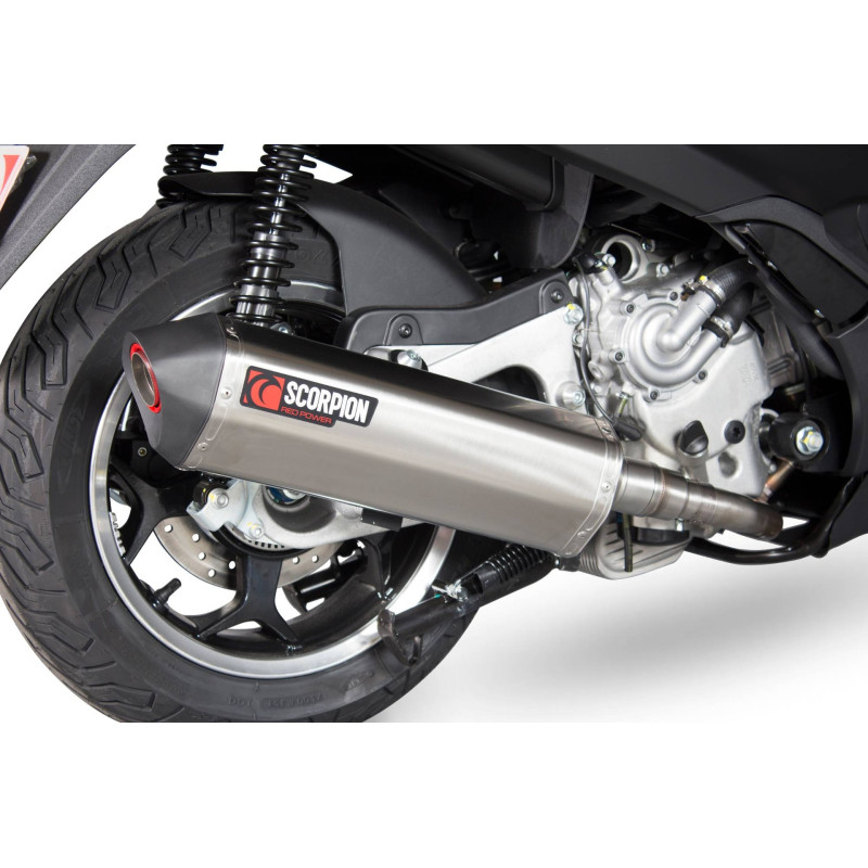 Silencieux Serket "Parallel" Scorpion, Embout acier brossé pour Piaggio MP3 400 / MP3 400 LT, MP3 500 / MP3 500 LT