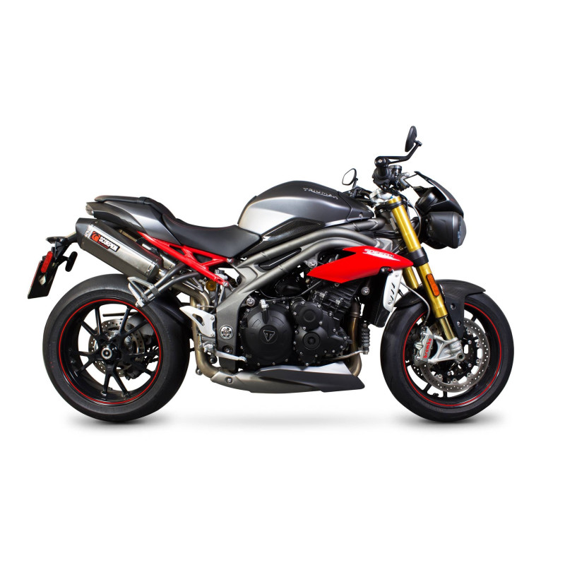 Silencieux Serket "Parallel", la paire. Embout acier brossé Scorpion pour Triumph Speed Triple 1050 R 2016 - 2017
